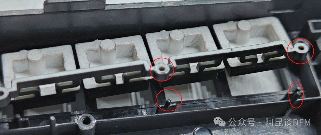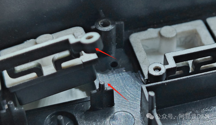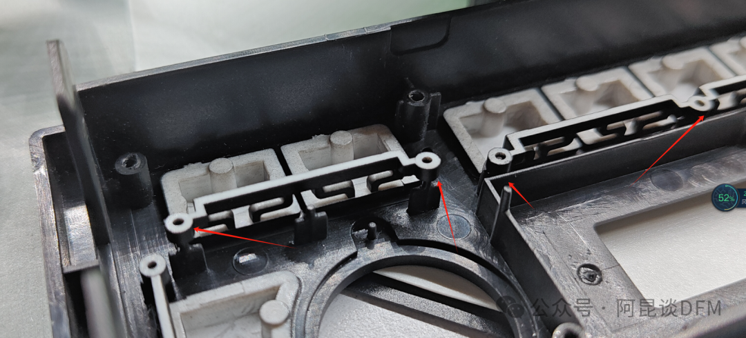一直觉得这个设计很赞,不需要铆螺丝柱,直接用用本体成型。生产方便还节省成本。当然可能有人会感觉 这样螺丝露出来不好看,这就是仁者见仁的问题了。