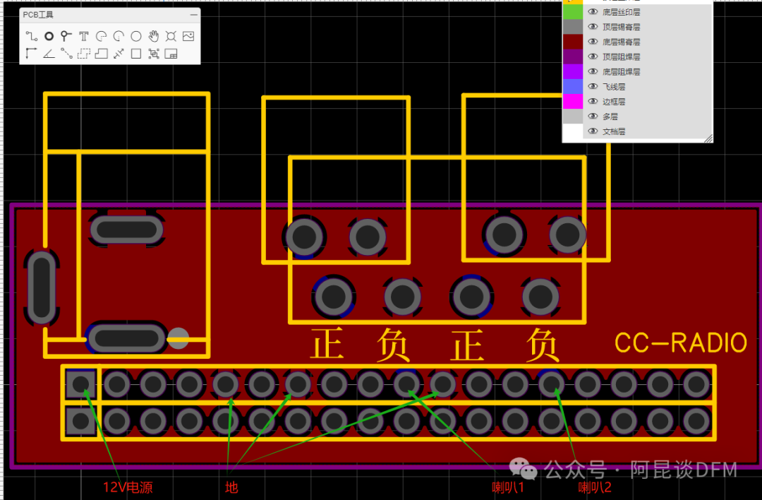 功放电路挺简单,接12V电瓶电源,通电即响。