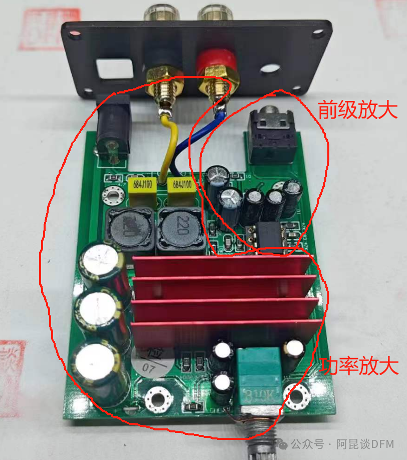 这个里面其实就分2部分电路,一部分是将输入的低音信号经过前置运放先处理放大,这个信号的功率还不足以驱动几十W上百W的低音炮,会再加一个后置功率放大电路进一步将这个低音信号放大。