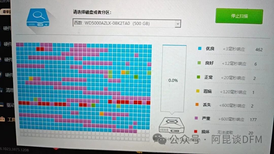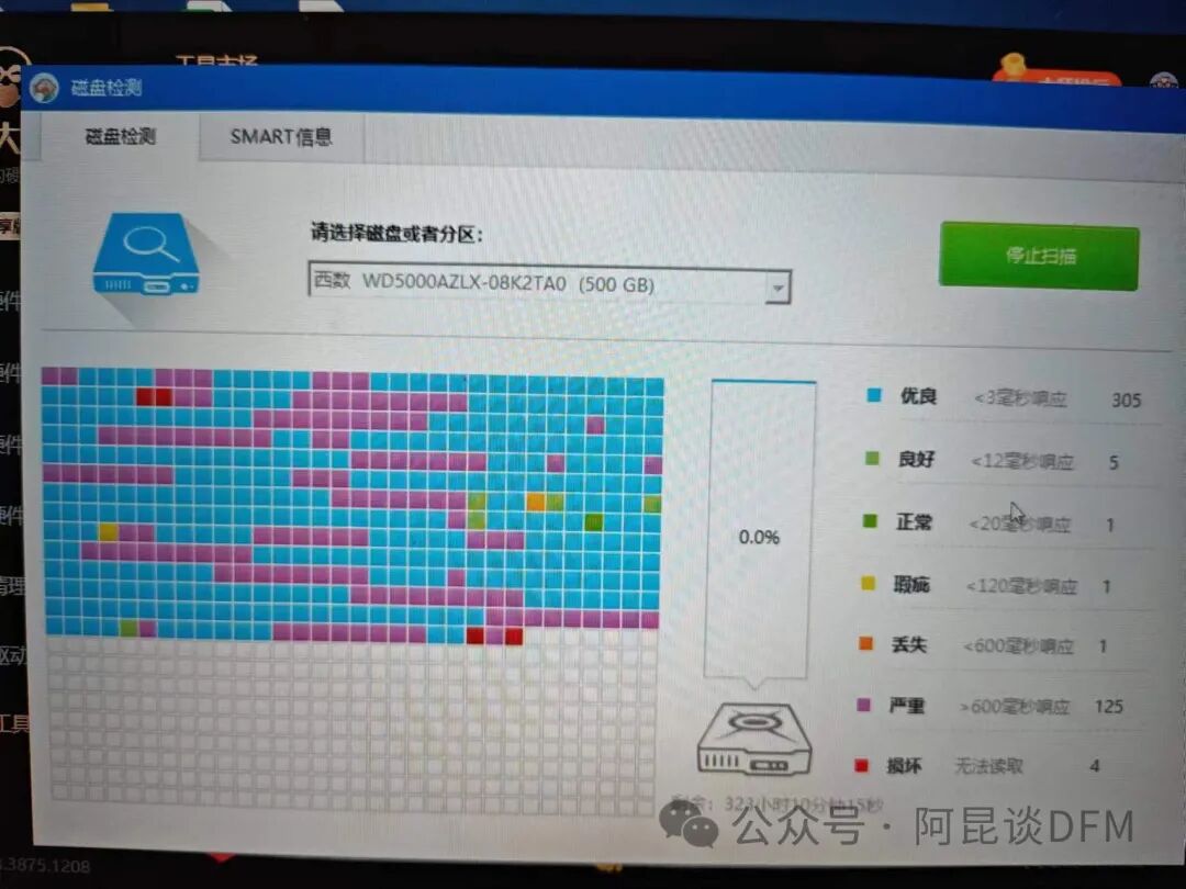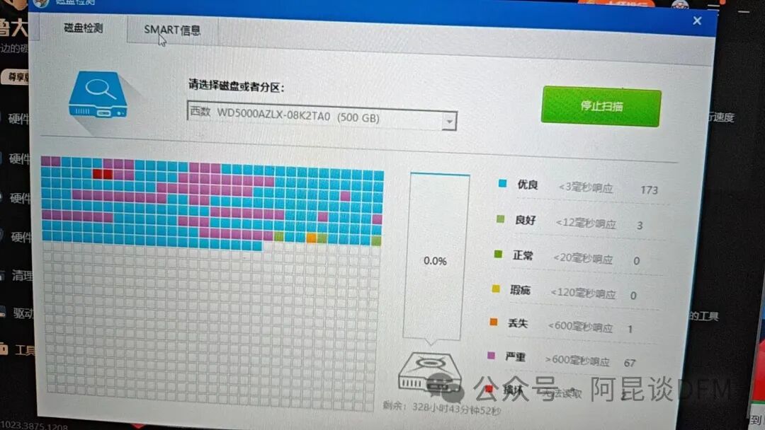 前段时间朋友拿了一个硬盘给我要我帮助把里面的数据拷出来。后来也总算把他想要的关键数据考出来了。整个过程非常卡顿,我用检测工具对硬盘进行了扫描,发现这硬盘坏道可真多啊。