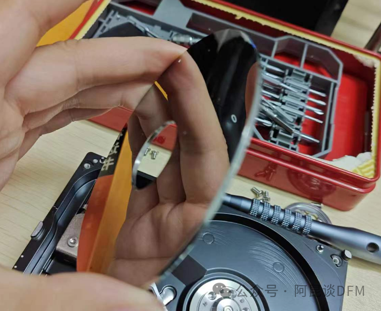 其实就类似CD光盘了,只是容量更大,因为存储密度非常大,上面是绝对不能允许有任何灰尘甚至伤痕。随便一点小异物可能就导致你这个区别几十几百兆的数据没了。