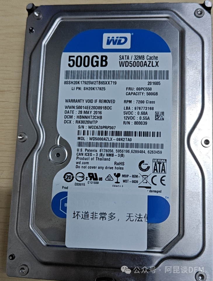 只能很郑重的告诉朋友,这硬盘可以报废退休了,再存下去,数据是真的拿不出来了。经同意后,这硬盘就由我来处理了,先做好标记先。