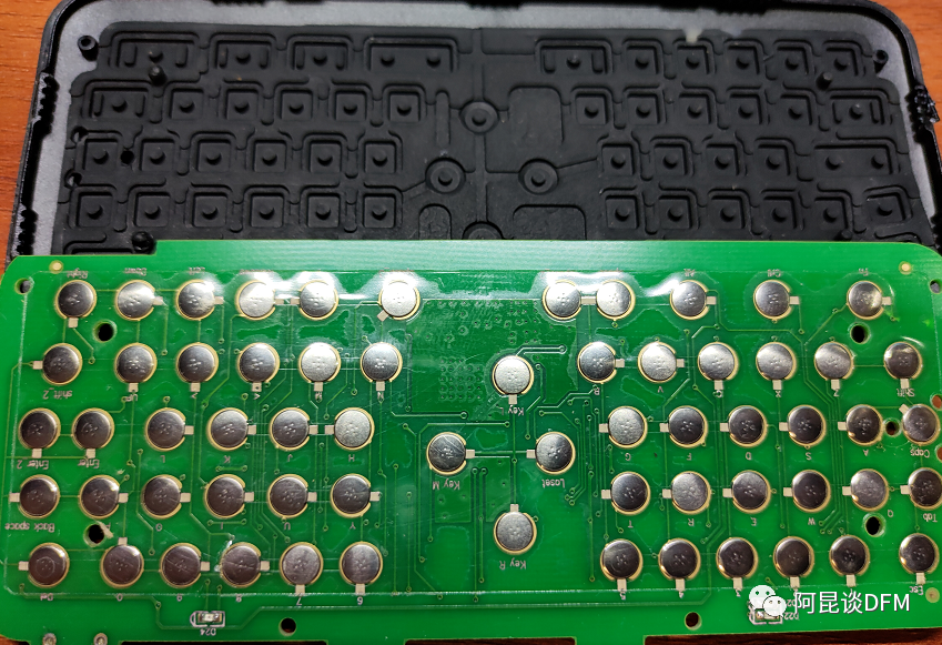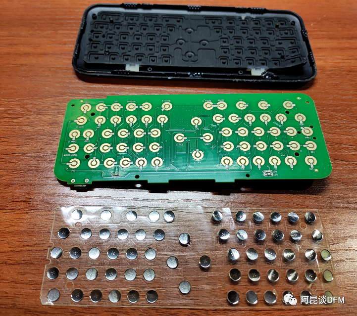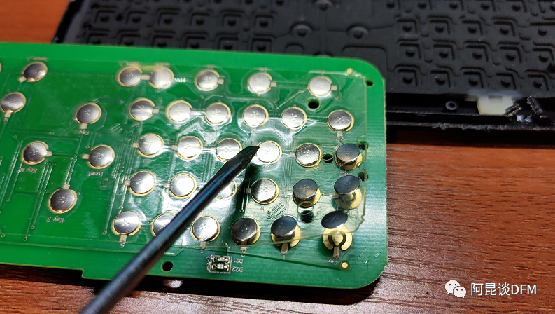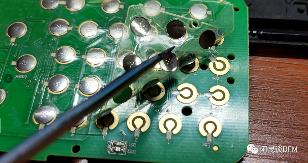 目前这种设计是功能按键手机与遥控器的主流方式,可能在老一点,差一点的就是用导电胶(导电胶的劣势是需要专门开模具来制作 ,受温度和时间影响,在金手指上残留,导致寿命降低,而锅仔片受温度影响小,寿命长,使用成本也更低)