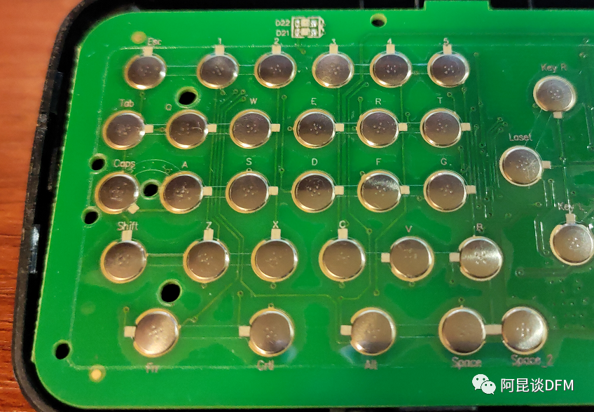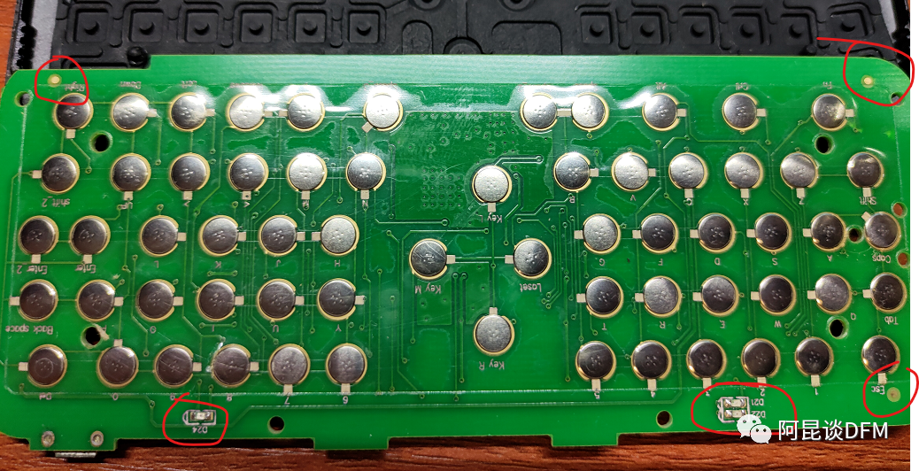 按键面有三个贴片灯,所以设计了三个MARK点用来SMT的定位。