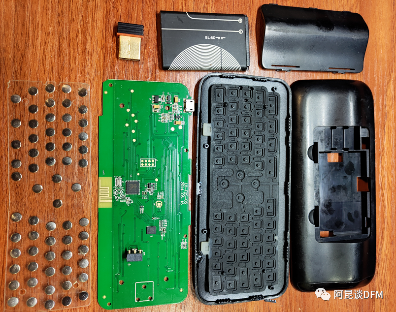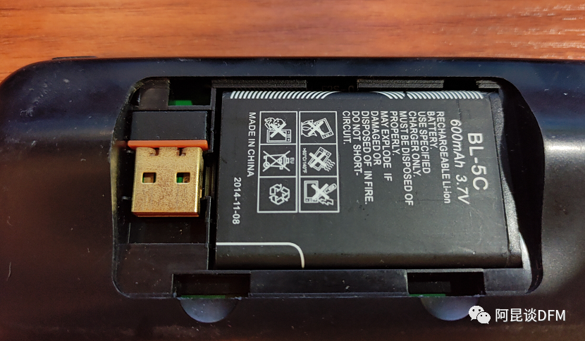 使用的电池是一个诺基亚手机当年用的比较多的充电电池,使用MICRO USB充电,还有一个USB接收器,可以一同收纳在键盘内部,这个两款设计是值得点赞的,没有用万年的2节7号电池,也没有忘记给接收器“安一个家”。对于我这种完美主义的人来说,是不能不在意的。