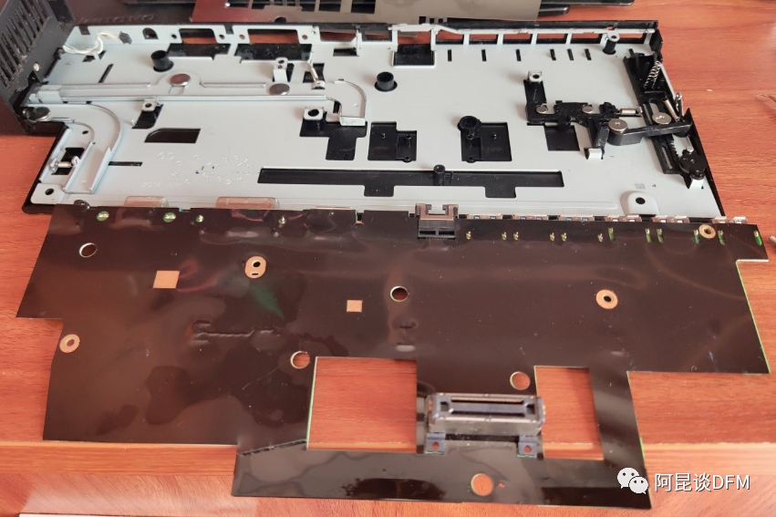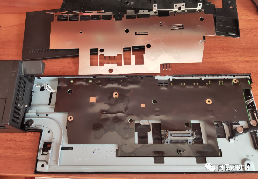 拆掉不锈钢片,下面还有一层黑色类似塑料手感的黑色模片。