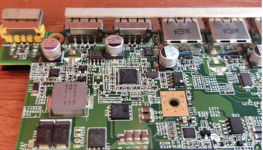 为什么这样说,这里要牵涉到有相关联系的题外话:阿昆在往常PCB评审中,对于贴片阻容元件的摆放位置,个人观点一直是能放顶层(多料面),就不要放底层(少料面),因为贴片的阻容感类是非常容易受应力、撞击影响的元件,在生产周转包装取放过程 不留神就非常容易撞件,导致产品隐患故障出现。而顶层多料面,因为除了常规阻容不家IC芯片、连接器等较高的元件,他们就像参天大树一样,会保护住小元件,不被外界异物撞到。