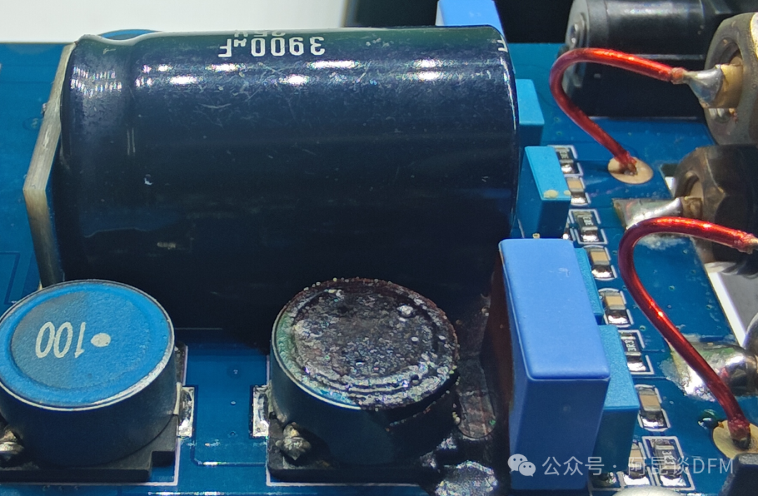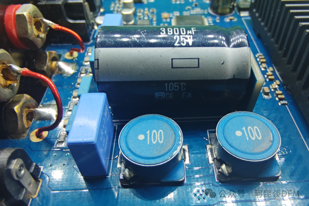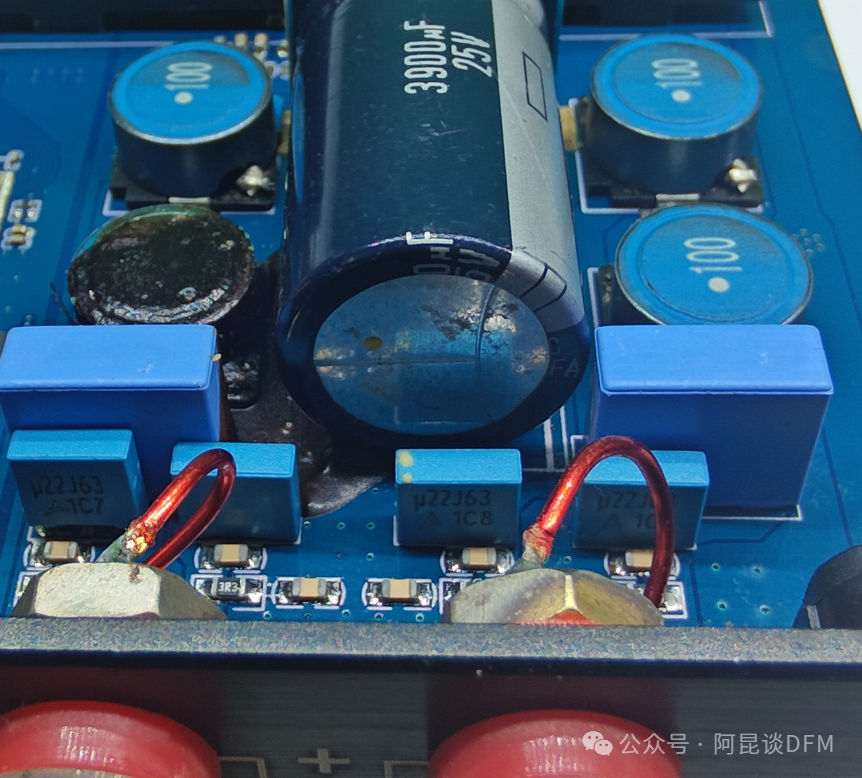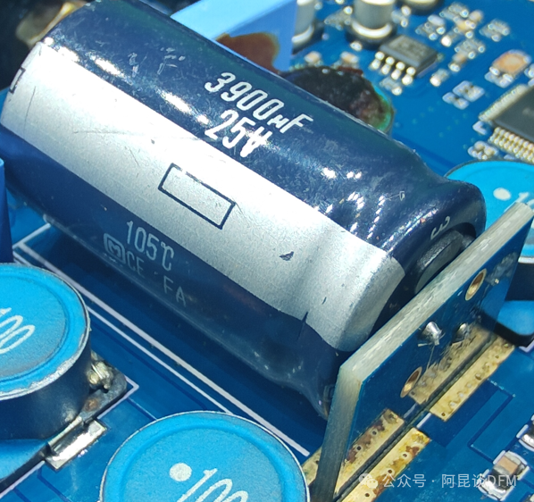 这个大电容是焊接在一个小pcb上,然后再把pcb焊接在主板,这个焊接方式还真很少见,其实也有简单的方法,直接焊接电容,然后打胶固定即可,但是厂家通过这样的方式可以看的出更加的稳定保障。