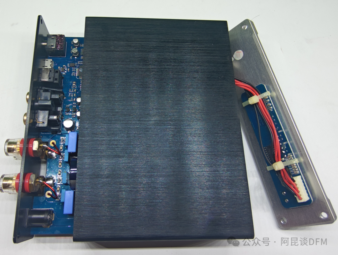 这种装配方式也是比较多小桌面功放类外壳的一个方式。