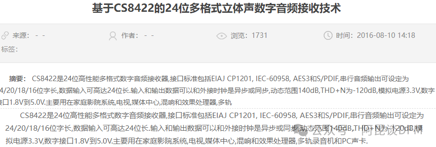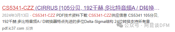 用的是CS5341CZZ,这个芯片一下提起我的记忆,因为06年刚工作那会,公司用的产品就是用一个CS5340CZZ芯片,这是一个AD转换器,将输入的模拟声音先编码成数字信号