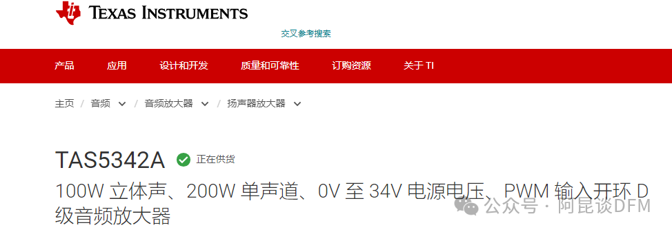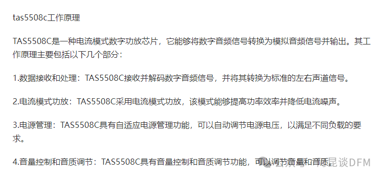 这个TAS5508C芯片可以看的出是其它音频信号输入后,通过它的切换,最后输出模拟声音给功放电路发出声音。查一下看