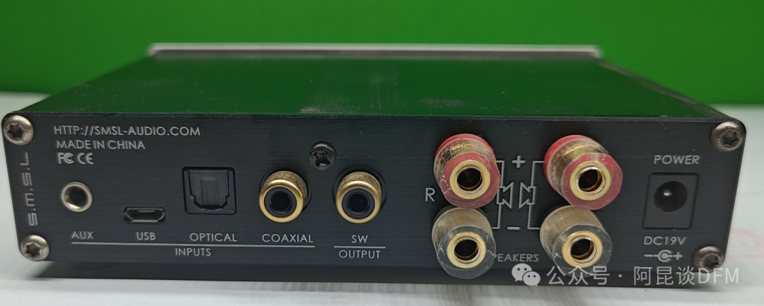 小小功放,接口齐全,模拟AUX、光纤、同轴、USB音频输入,一应俱全,可以切换其中一路,并从音箱输出。SW是低音炮输出