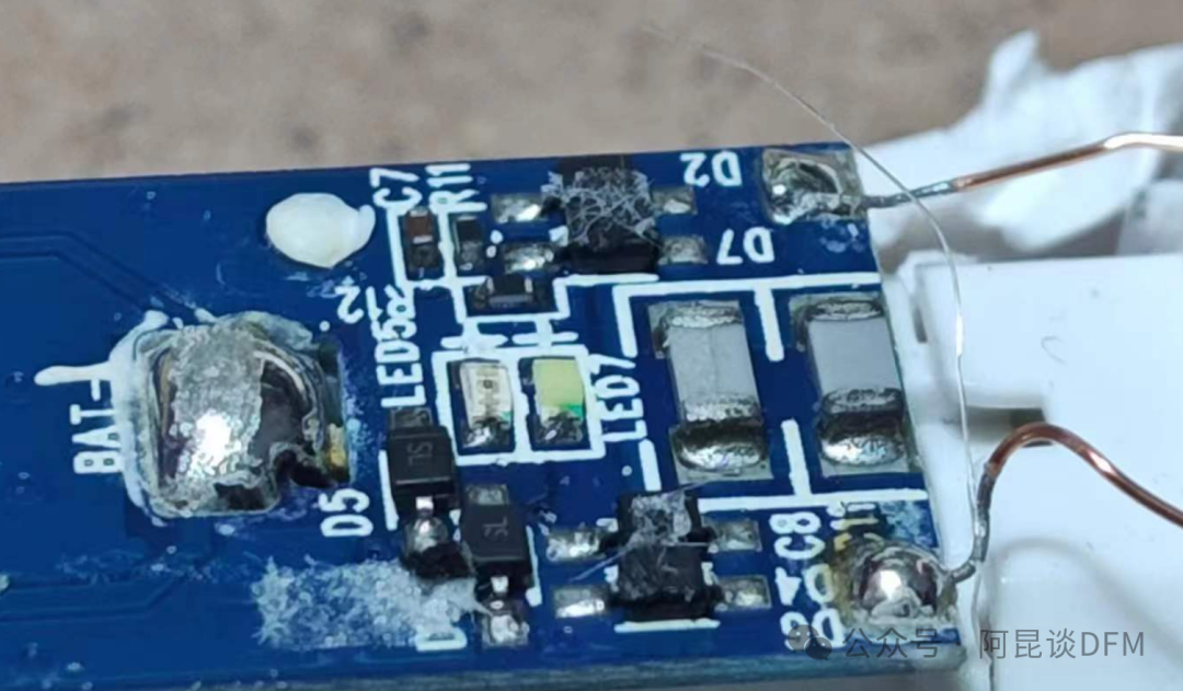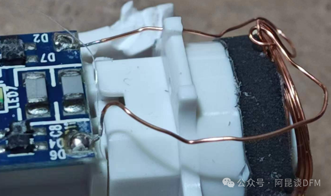 这一部分是无线充电的电路,这个黄色LED的外观挺特别的,没有见过