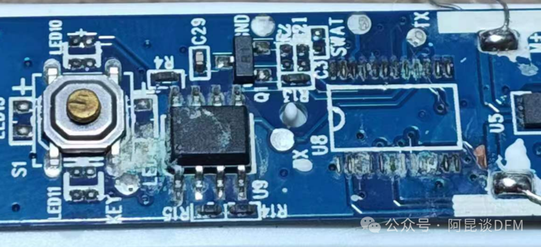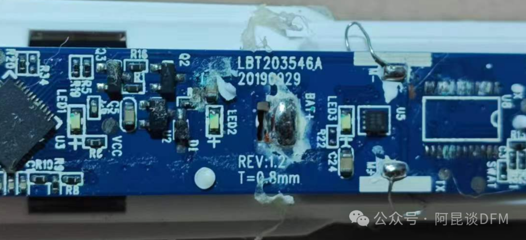 首先印入眼帘的就是发霉,虽然牙刷密封做的很好,但用了几年,水汽怎么也进入了一些,最后在电路板上滋生霉菌了。