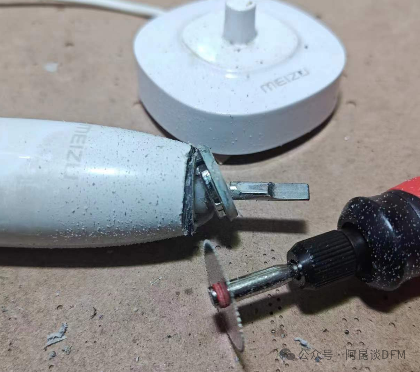 为了拆解它,我还提前特意买好了一个小切割工具,因为是超声波焊接的外壳,只能破坏拆解了。