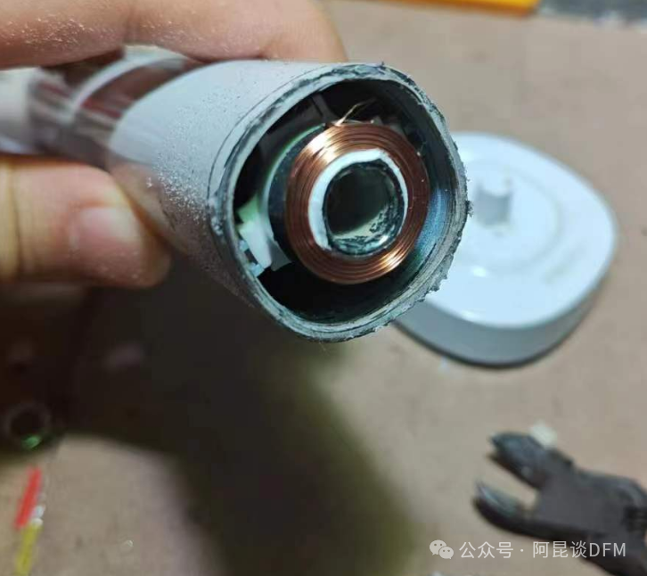 按住线圈位置的卡扣,整个牙刷主机就推出来了