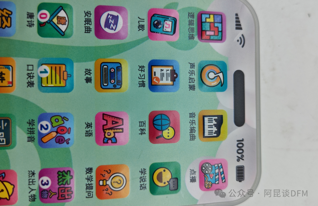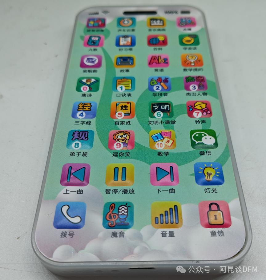 小孩都爱看手机,奶奶给她买了个几十块的手机玩具以转移注意力,这个玩具其实插有创意的,上面好多”APP“,每个APP按键都有相应的功能,可以听故事,听儿歌,还有各种幼儿育儿的一些音频内容。