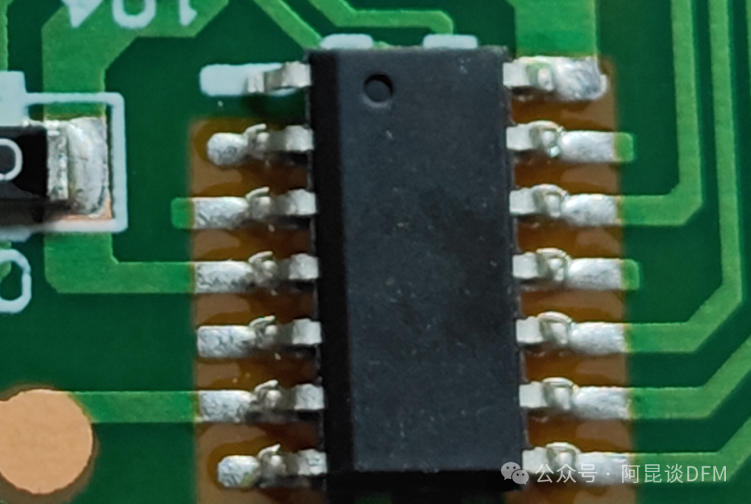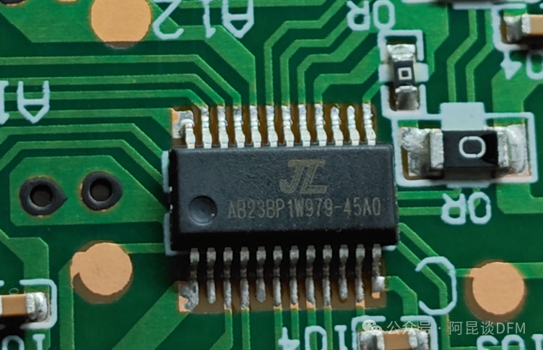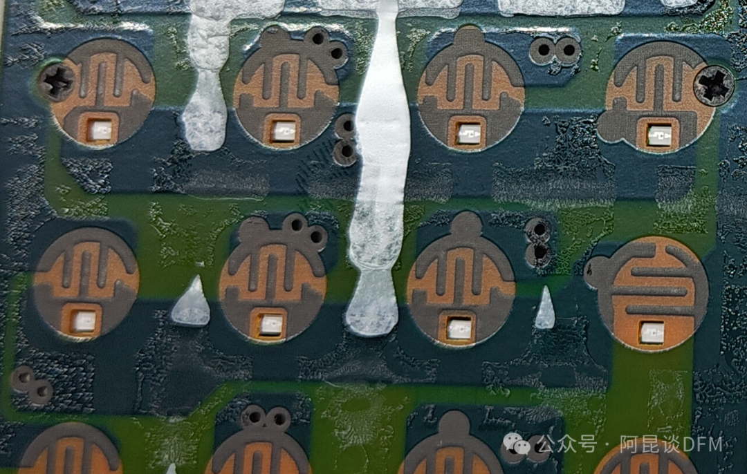 看这过孔是黑色的,说实话,我还是第一次看到,我记得好多听前有听PCB板厂的人说过,有种低端PCB就是用碳油来代替铜皮做走线,像这种是用碳油当导电物质来代替镀铜,优点就是成本低,缺点是有的时间久可靠性会差。