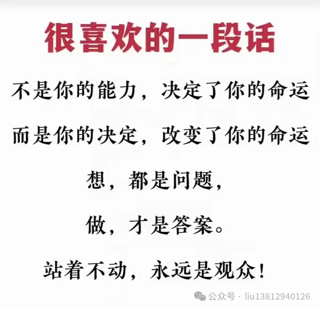 八,激励什么叫激励?真正大成功者一定是自我激励的人,不用老师加油打气,一定是自我激励,自我燃烧型的,平时朋友圈看到励志的东西都能自我激励,而不是每次都转发给别人看,一定是先激励自己,不是先激励别人,只有让自己充满能量才能去燃烧身边的人。