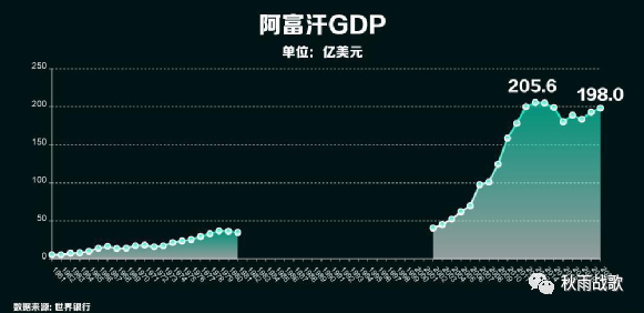 2020年阿富汗的GDP是198亿美元,人均GDP只有510美元。