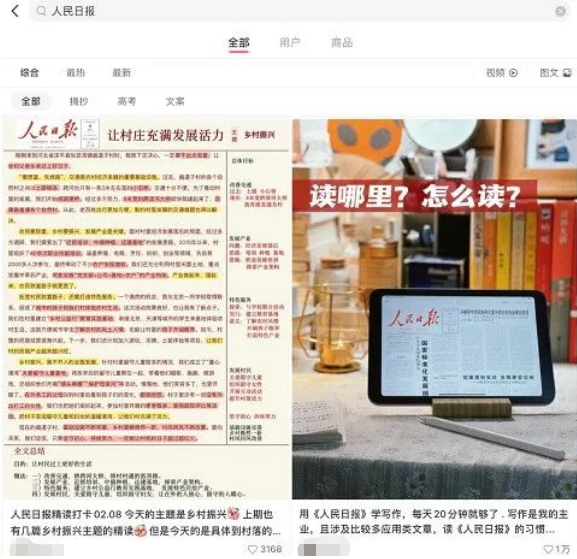 人民日报,是小红书上一个屡试不爽的爆文点,很多博主都分享过,ipad精读实拍的,新闻稿提取精读的都有,几乎大部分涉及到人民日报的笔记,流量都不错。