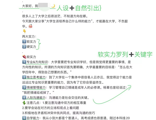 现在的时代,只要你掌握一些文案的技巧,就能写出一段完整的文案,很多小红书笔记的文案都比较“随便”的,也有固定的公式:引出(个人想法、亲身经历+内容总结+人设(总结)+全篇多关键词布局