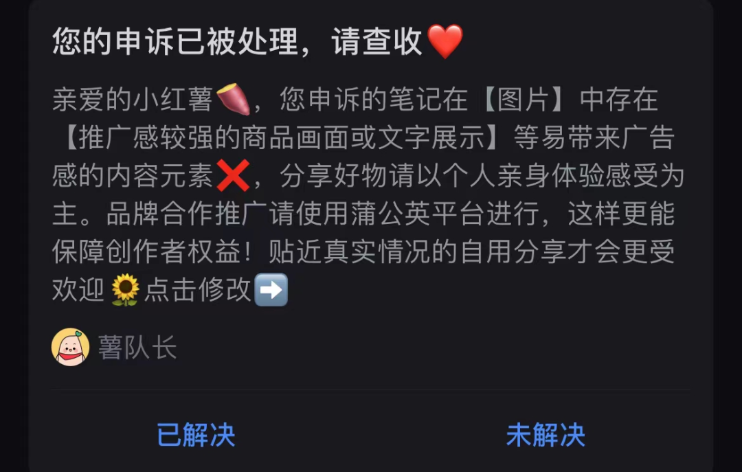 但如果你的笔记真的涉及到营销或违规,官方有时候会给出大致的违规修改方向,但更多的时候,是让你猜自己为啥违规,就很迷。
