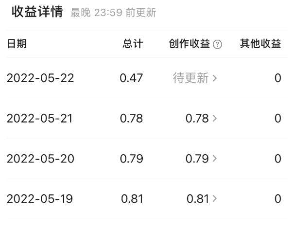 我一开始做自媒体的时候,完全是没有收入的,就单纯的靠爱发电。所以,那些一看到别人说自媒体很挣钱,就风风火火裸辞开干的朋友,别想着一开始就能捞到钱,哪怕是有那也是极少数。
