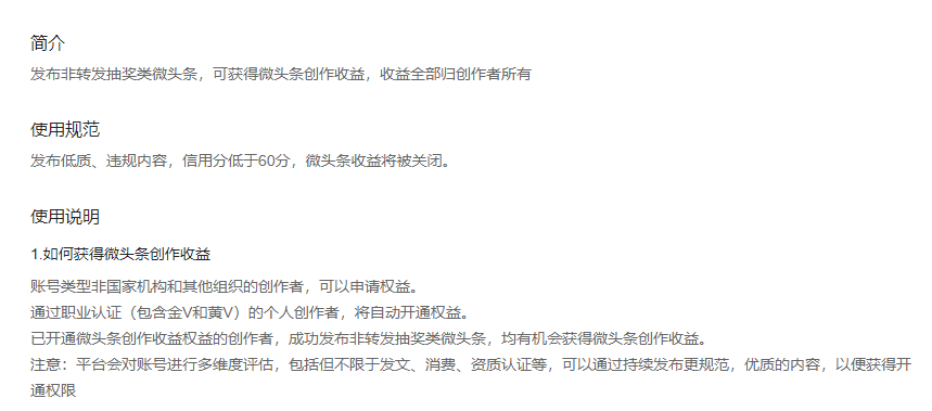 去年年底推出的【微头条首发创作】功能,发布微头条,就能赚取双倍收益。申请微头条首发创作功能有前提,头条号或西瓜视频达到100粉丝,近180天发布微头条数量超过10条。