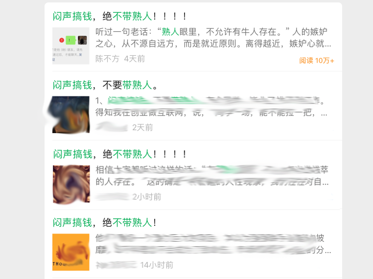 关于“闷声搞钱,绝不带熟人”这个话题。其实我很早就想写了,一直没有找到个可出发点,这次被所谓的朋友拉黑,正好找到了“发泄”的机会。
