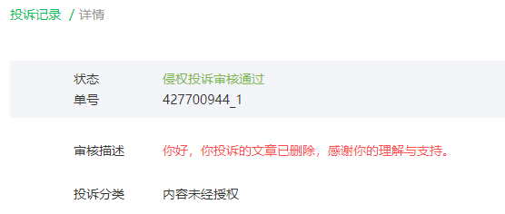 虽然可能有些时候,举报对于抄袭者|洗稿者不痛不痒的,但作品就像是自己的孩子一样,咱要尽力保护。
