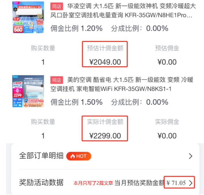 平时写好物推荐,有两个不容忽视的作用,一是,在养权重的过程中,通过好物推荐赚点小钱。淡季的时候,一天一单可能就二三十,但三两个单子积累起来,对于普通人来说已经不错了。