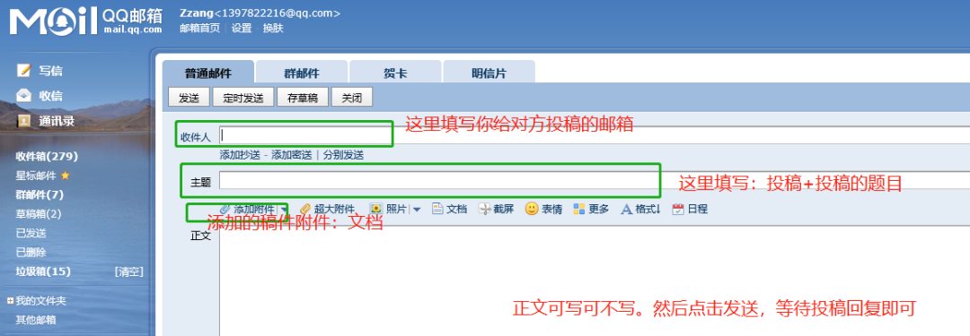 比如我的投稿邮箱:1397822216@qq.com,投稿微信:zzang425。