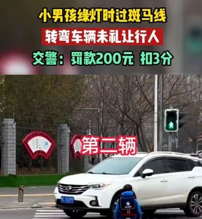 交警解释说,虽然是绿灯,但如果有行人正在过马路,车辆必须停下来让行。这位司机没有礼让行人,所以要被罚款200元,还要扣3分。