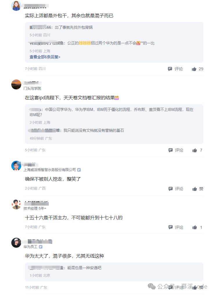 还有网友指出,“在这套IPD流程下,天天卷文档卷汇报的结果。”有人补充道,“中国公司学华为,华为学IBM,IBM死于僵化的流程。”这种对企业流程的吐槽,也反映了大家对职场现状的不满和困惑。