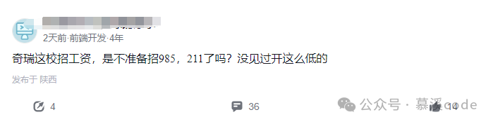 最近,有人在脉脉上发帖说奇瑞的校招工资开得太低,甚至不打算招985、211的学生了。这话一出,引起了不少讨论和吐槽。这年头,找工作本来就不容易,更别提那些高学历的学生还得面对这样的薪资情况。