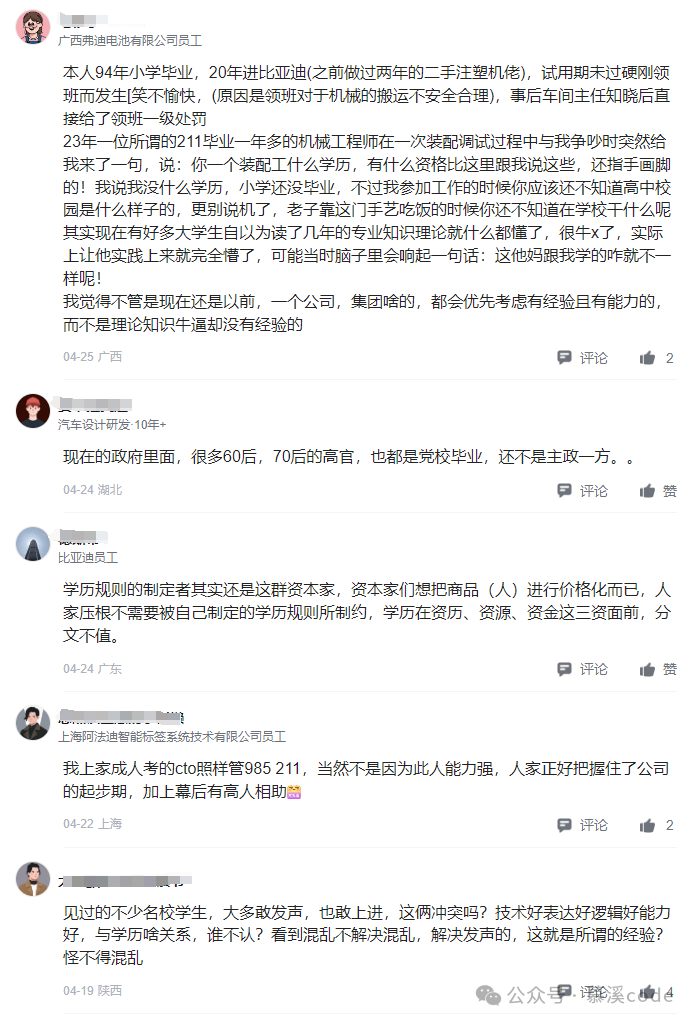 评论区里的讨论更是热闹。有位老员工说,虽然学历不高,但凭借多年的实战经验和技术,依然在公司占据一席之地。而某些985、211的新员工,自认为理论知识扎实,却在实际操作中屡屡碰壁。这说明学历和能力并不能画上等号。
