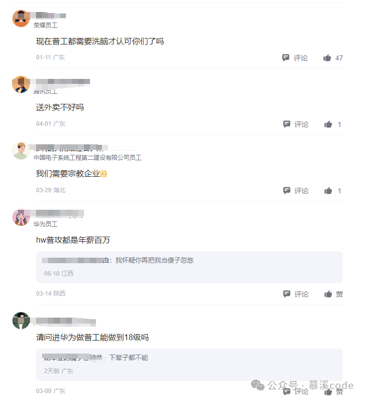 但是,这里也不是天堂,评论区里的一些声音值得我们关注。有位荣耀员工直言,“现在普工都需要洗脑才认可你们了吗”。还有人吐槽说“送外卖不好吗”,这可真是见仁见智了。