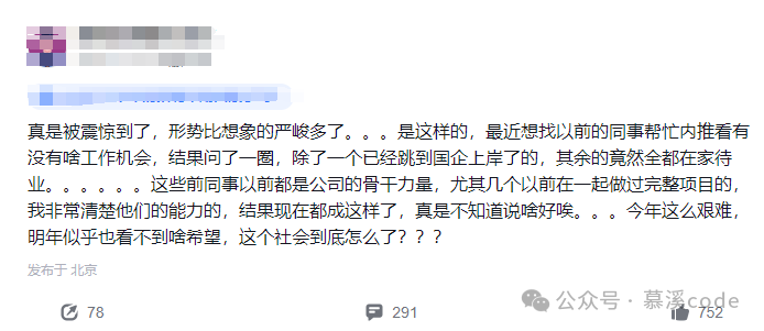 有位程序员网友直言,国企也并非所有人都能轻松上岸。一位跳到国企的前同事帮忙内推,但国企领导看了一眼后表示,他们现在只招初级的,而且对年龄也有严格要求。这让人不禁感叹,职场的门槛真的是越来越高了,即便是有经验的人也无法轻易找到理想的工作。