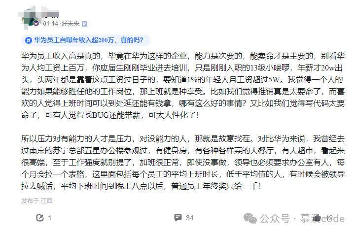 看来,华为员工的“高薪”背后,是高强度的工作和无休止的加班啊!这“百万年薪”,怕不是用“肝”换来的吧?