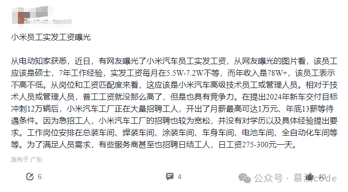 💰 小米汽车员工工资大曝光,有人欢喜有人忧?