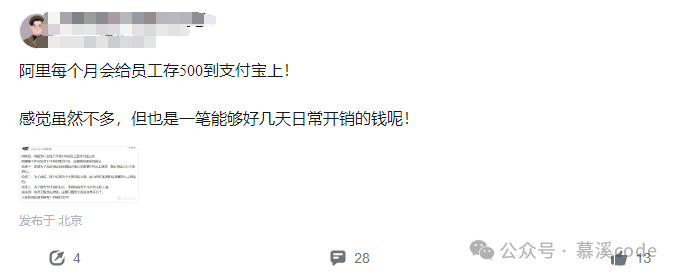 一位自称是阿里员工的网友,在职场App上爆料了这项“隐形福利”。消息一出,评论区瞬间炸锅了!