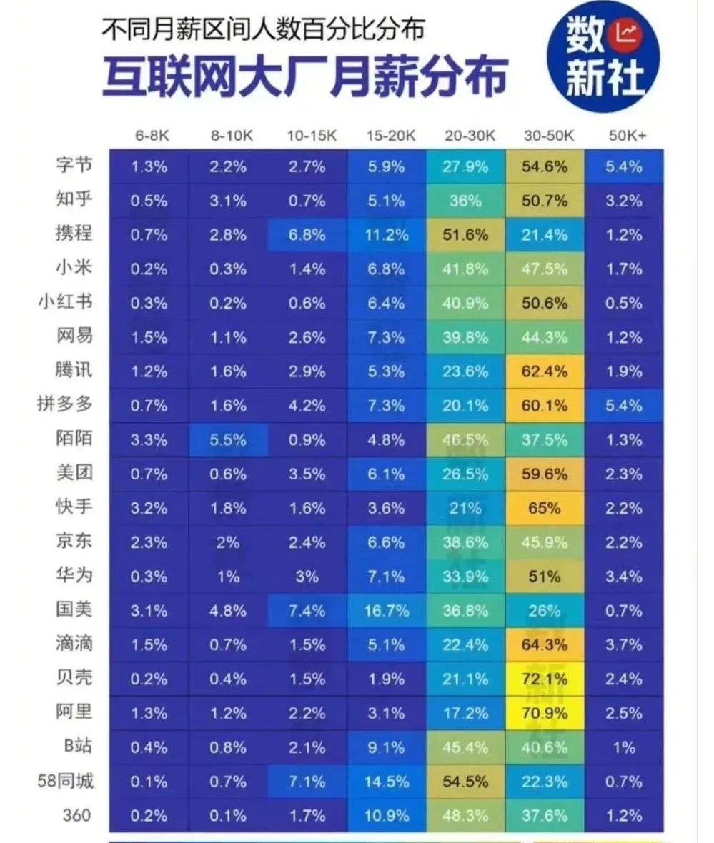 昨天翻阅了一份颇具趣味的数据,关于互联网大厂的月薪分布情况。觉得这绝对值得分享给大家。