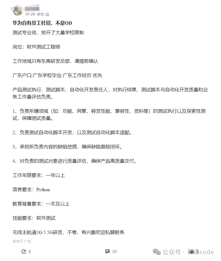 🔥 华为东莞研发总部招测试,门槛放宽了?
