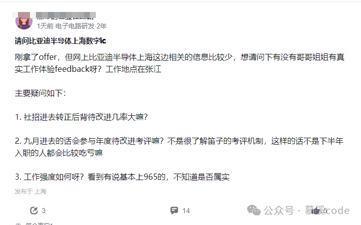 听说比亚迪半导体上海数字IC招人啦?这年头,找个好工作比登天还难,这不,脉脉上就有小伙伴发帖求职攻略了!