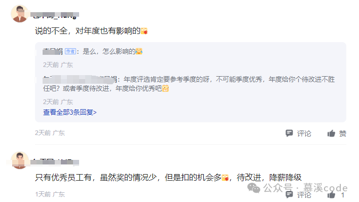 评论区里,有经验的“老司机”也出来“指点迷津”:别看这只是季度绩效,它对年度评选可是有“蝴蝶效应”的!季度优秀,年度评选的时候自然更有底气;但要是季度“翻车”了,那年度评选估计也悬了。
