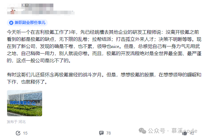 这位老哥表示,离开极氪后,新公司虽然不卷也不累,领导也很好,但他却感觉一身力气没处使。