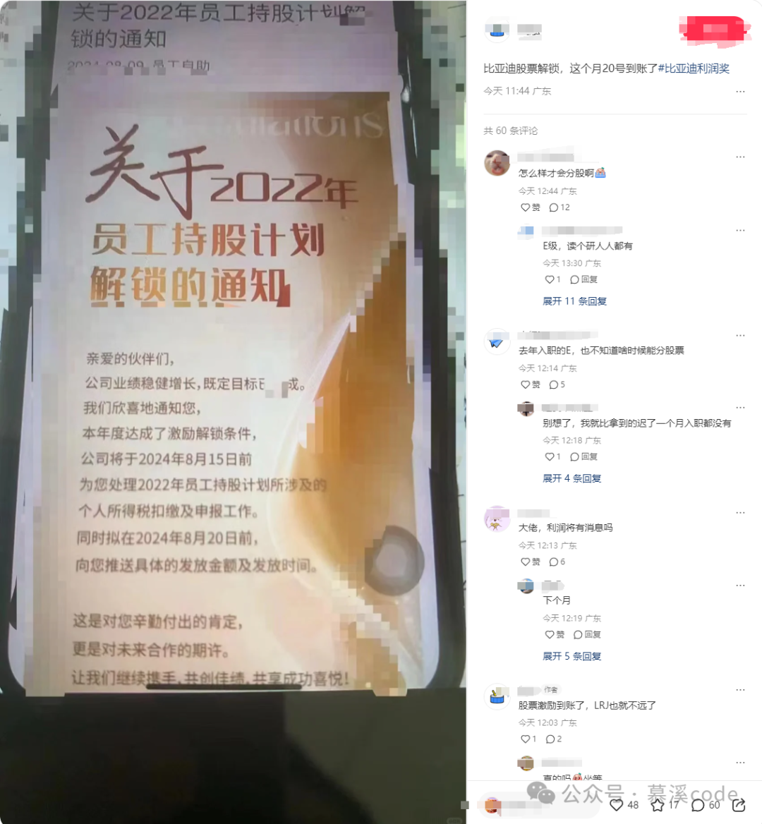 最近,比亚迪内部可是热闹非凡,有员工在脉脉上激动地晒出了自己的股票到账信息,瞬间引发了大家的围观。看来,对比亚迪的员工来说,没有什么比股票到账更让人兴奋的消息了。