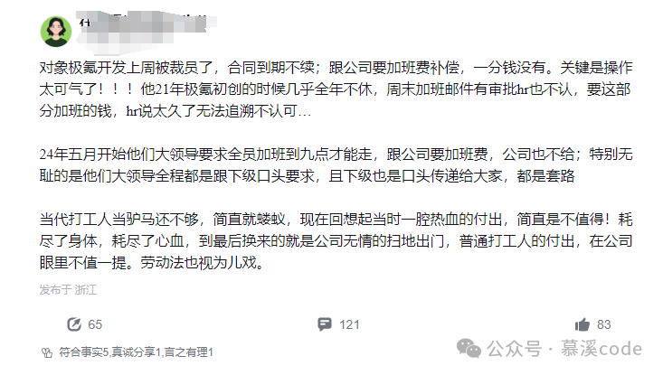 脉脉上,一位朋友吐槽说自己对象是极氪的开发,公司不续签合同就算了,竟然连加班费都不给!这操作,真是让人目瞪口呆!