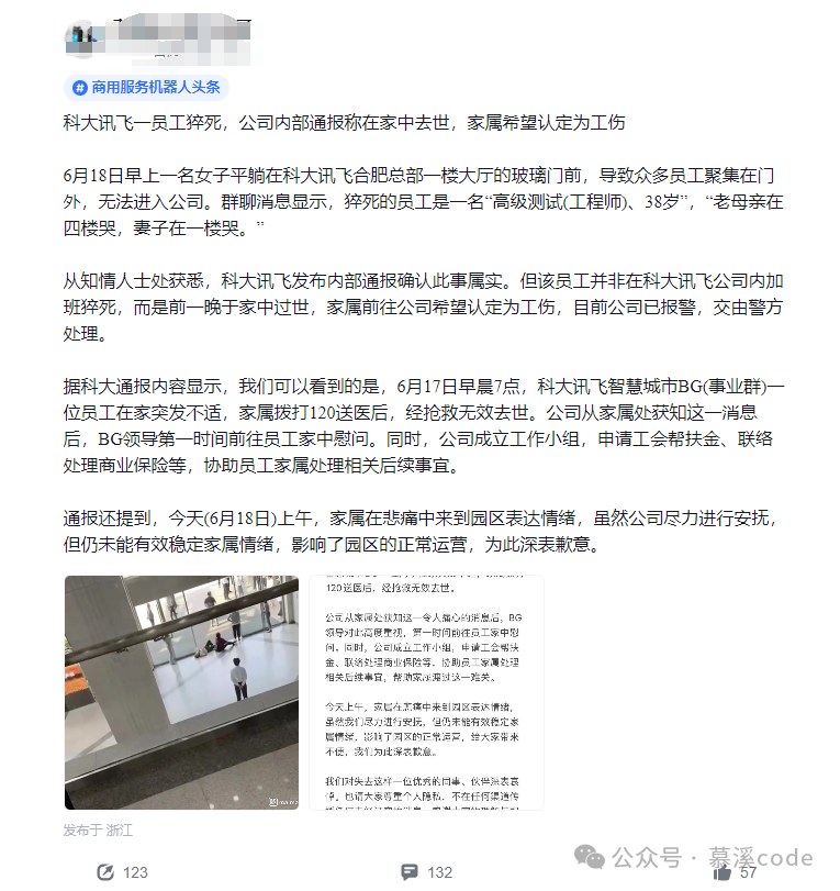 😔 科大讯飞员工猝逝,家属公司各执一词